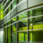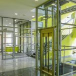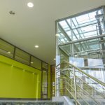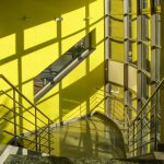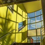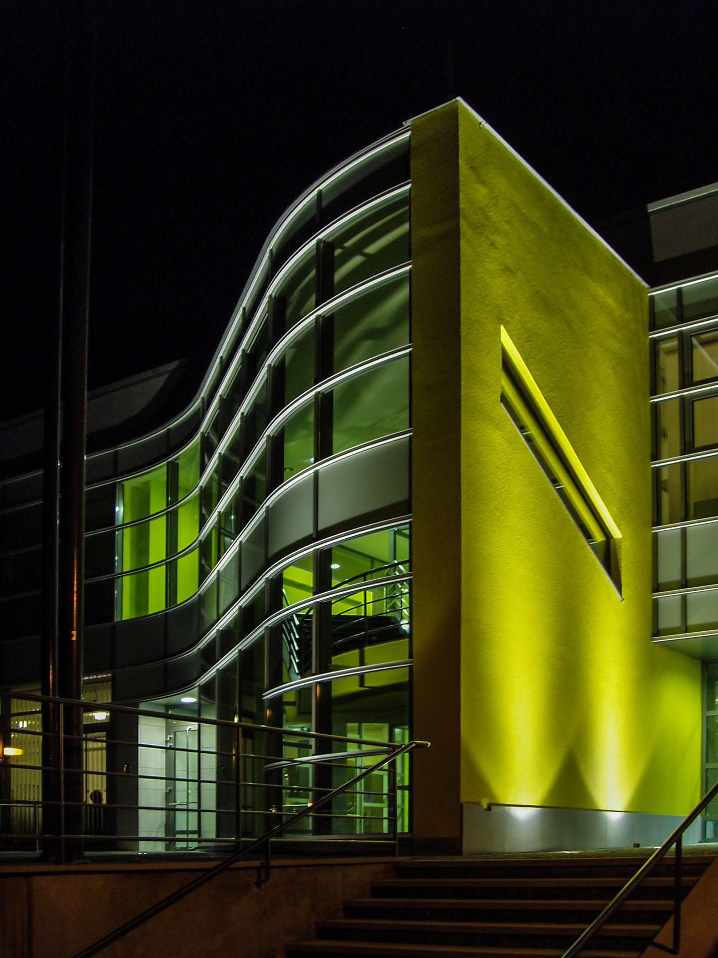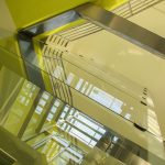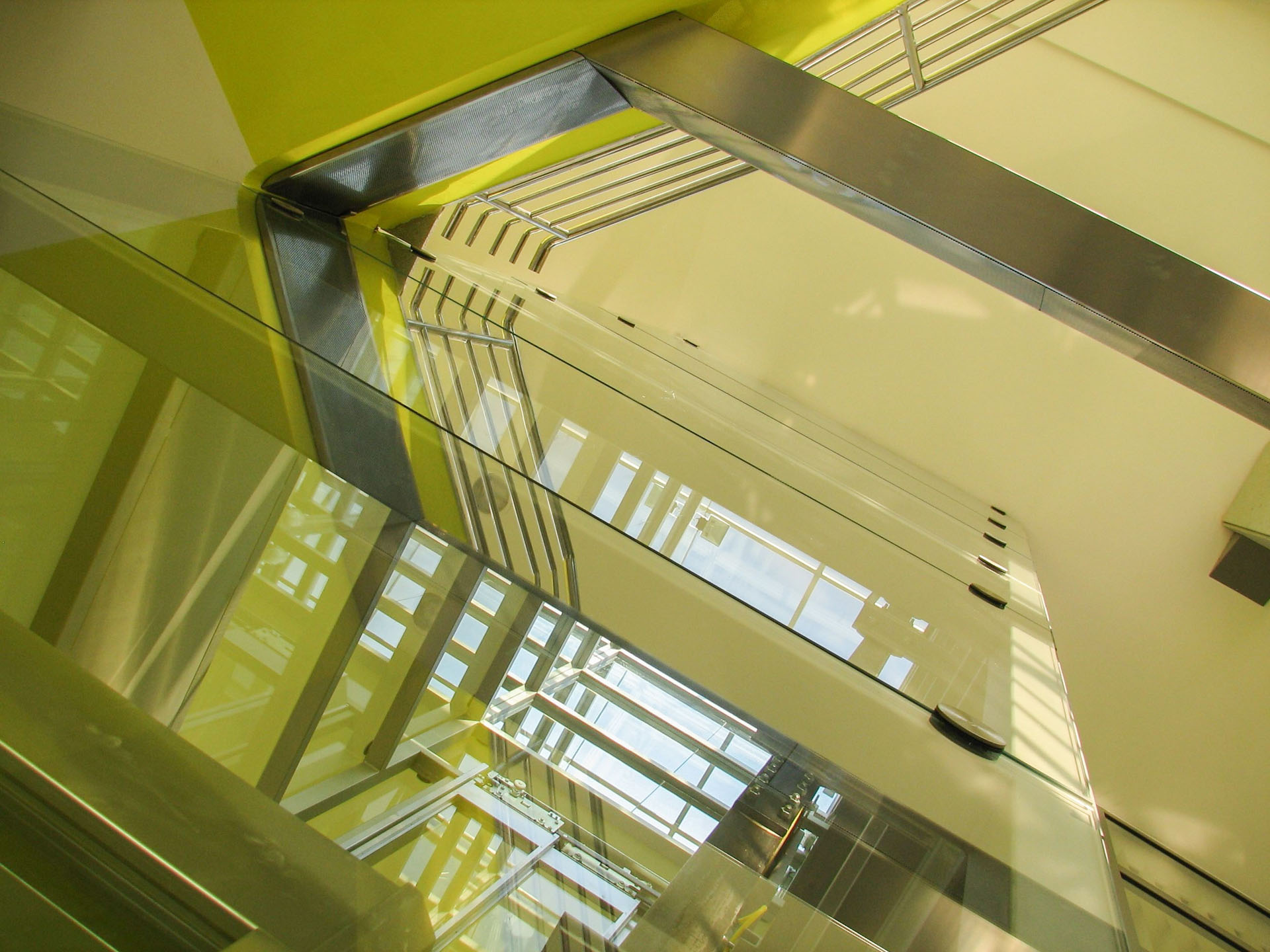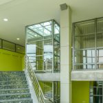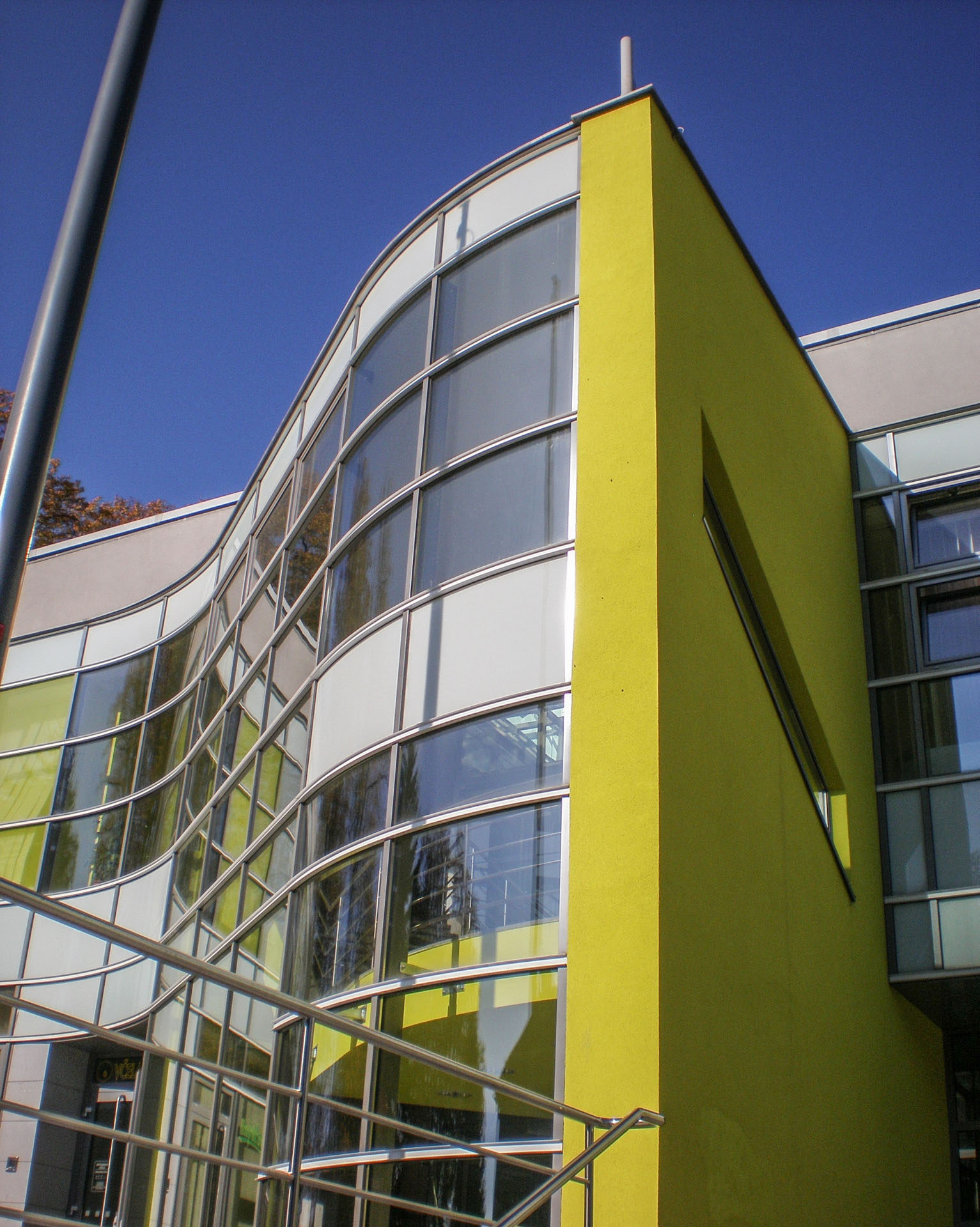 Jako zcela nový významný charakteristický prvek bylo z hmoty objektu vysunuto a vytvarováno reprezentační schodiště s proskleným výtahem s horním prosvětlením a prosluněním.