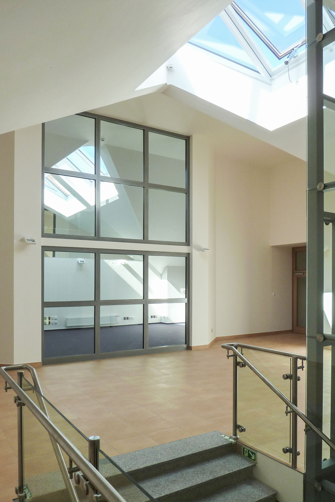 2. Průchodem je vyřešen hlavní a současně bezbariérový vstup do obou částí budovy, který je navíc ideálně chráněn před povětrností, sněhem a deštěm.